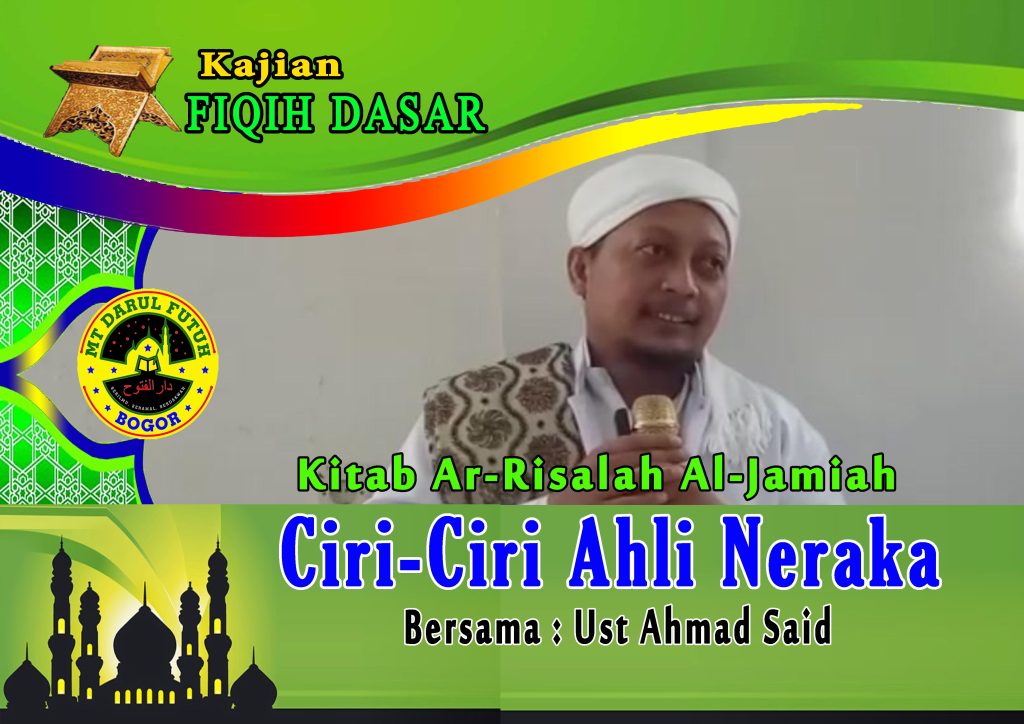 Assalamu’alaikum Wr.wb Sahabat MT Darul Futuh yg dirahmati Allah swt.Berikut kami persembahkan video KAJIAN FIQIH DASAR Mingguan yakni hari Senin dan Jumat yg diadakan di MT Al-Hidayah Jl Tanjung 8 Perum Alam Tirta Lestari Jam 16.30 wib Mengkaji Kitab RISALAH AL JAMIAH (Khusus Ummahat / Akhwat) Bersama Al-Ustadz Ahmad SaidAlumni Tarim Hadramaut YamanKhodim MT Darul …